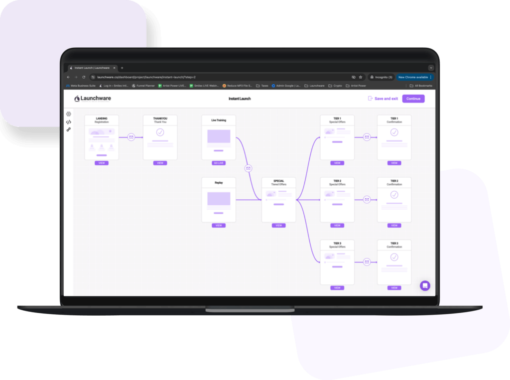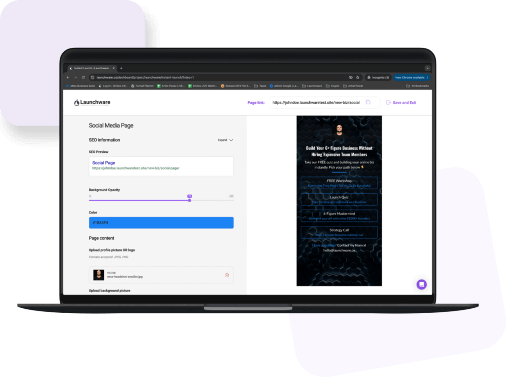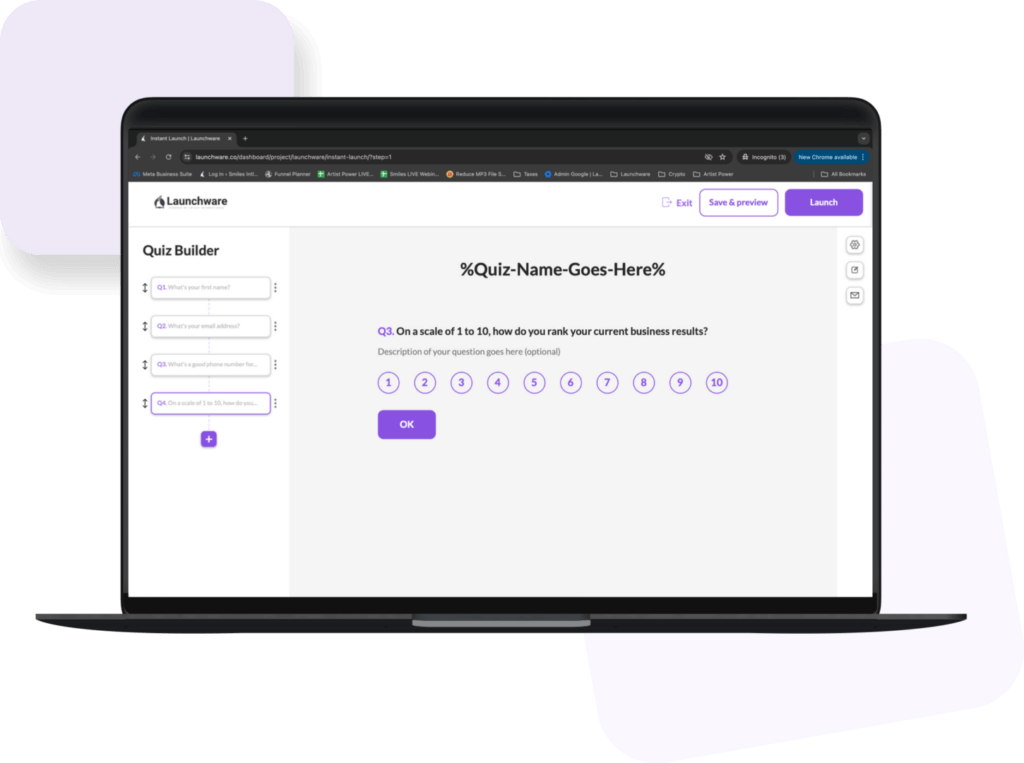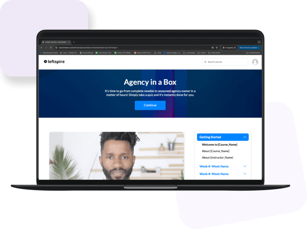 Launchware allows you to create a wide variety of professionally branded assets for your business. This includes landing pages and websites, sales funnels, membership sites for courses, group programs and private client portals, email marketing campaigns, social media pages, online communities, quiz funnels, and for premium plans, you can even create an agency that builds others coaches & entrepreneurs businesses.